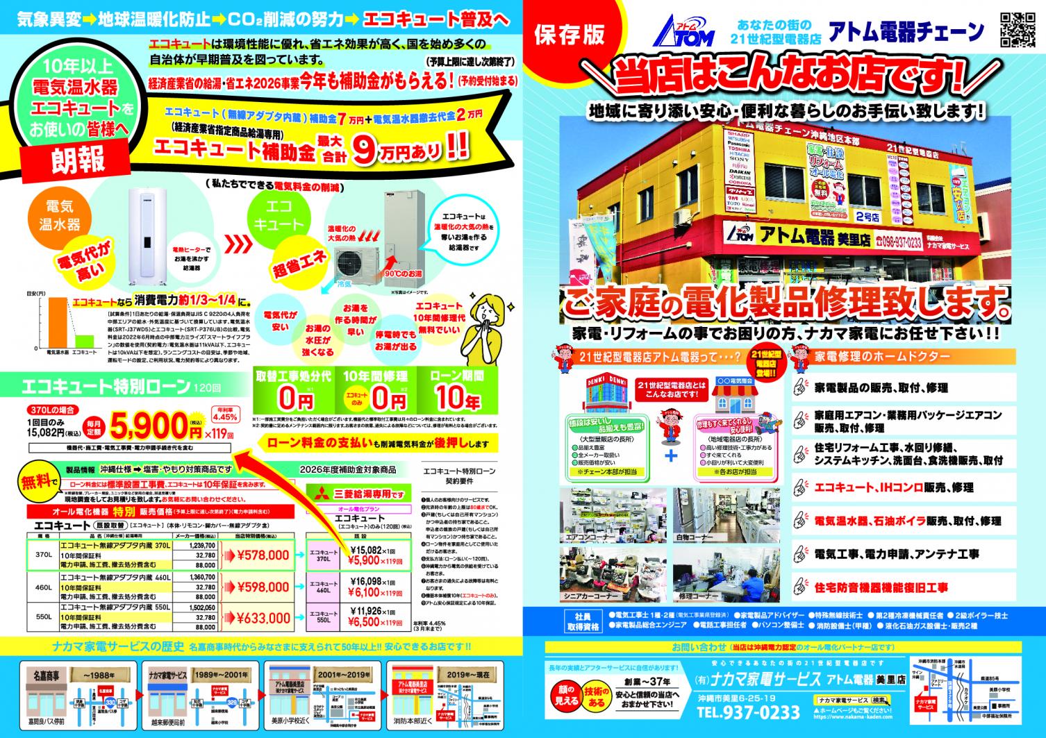 エコキュート(給湯器)は10年ローンで支払OK! 10年保証付!安心!毎月の灯油代、ガス代で支払いはOK!かも |
